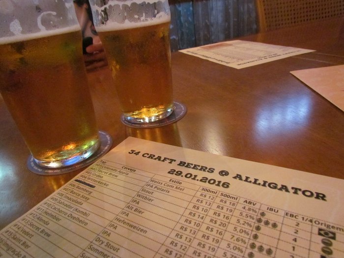 Além da parte das comidinhas, o Alligator chama a atenção pela enorme quantidade de cervejas artesanais ofererecidas. São 34 (trinta-e-quatro!) torneiras servindo cervejas nacionais e importadas. Uma coisa bem bacana é que eles dão um super espaço para as cervejarias gaúchas, em especial para as daqui da serra.
