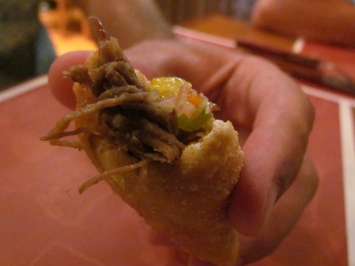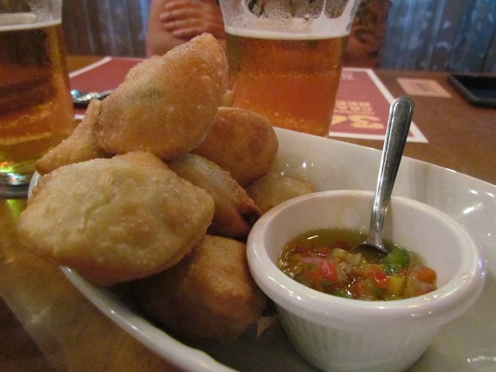 Depois de escolhidas as primeiras cervejas da noite, pedimos os pasteizinhos de costelão 12 horas pra ir forrando o estômago enquanto esperávamos os amigos que ainda não haviam chegado. Bah! Que pedido acertado!