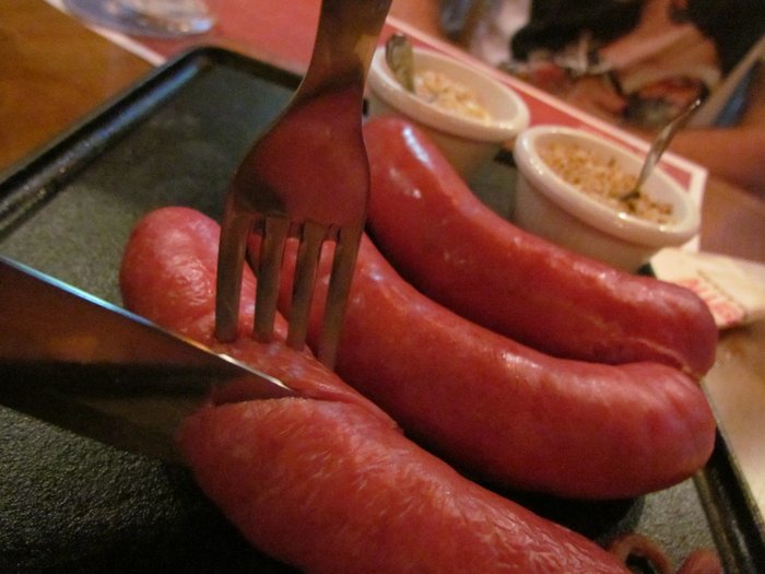 Provamos, também, a salsicha bock com mostarda. Boa para ir petiscando entre um chope e outro.