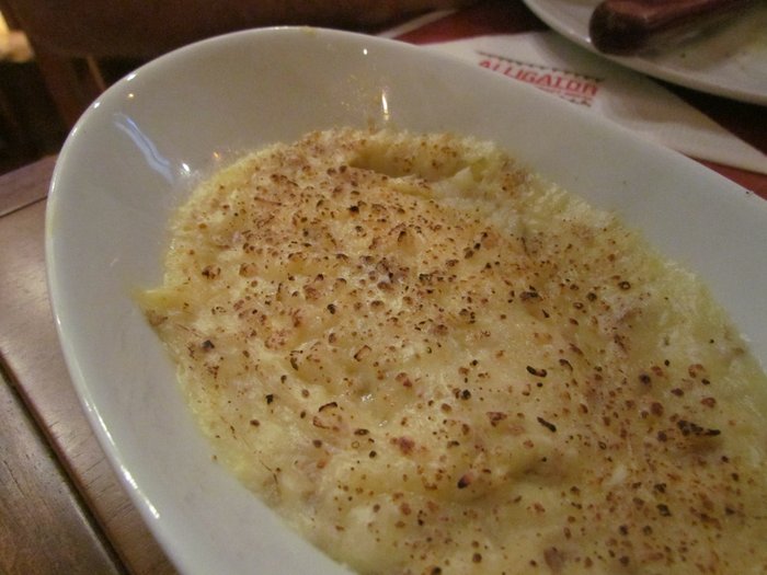 Tinha um purê de batatas gratinadas dando sopa na mesa e que eu não sei dizer ao certo qual dos pedidos ele acompanhava. Só sei que tava bom!