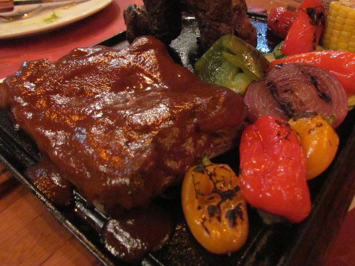 Como principal, eu fui de baby back ribs - as costelinhas de porco com molho barbecue. Bem cozidinha, com a carne se desprendendo do osso. Nham! Essa é a meia porção, ideal para uma pessoa.