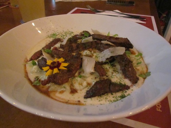 As massas não ficaram de fora dos pedidos da nossa mesa. O escolhido da Gabi foi o nhoque de batata com iscas de filé e molho gorgonzola. Nesse eu dei uma garfadinha e noooooooossa! Essa foi a minha reação.