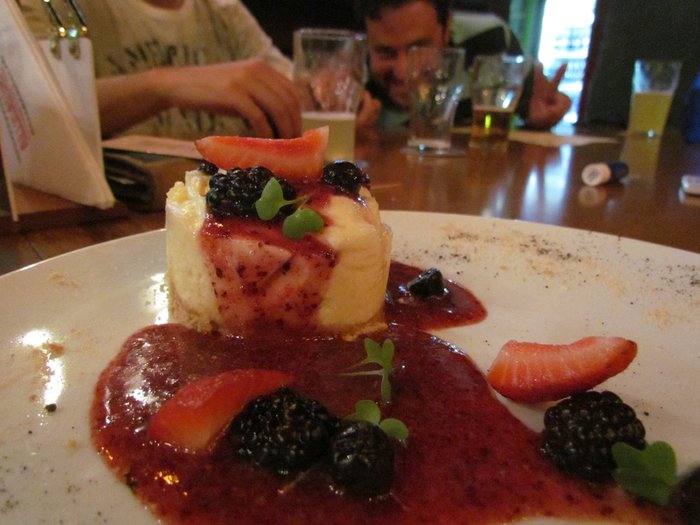 Para adoçar o final do agradável encontro com os amigos, fomos de cheesecake de chocolate branco com geléia de frutas vermelhas. Delícia!