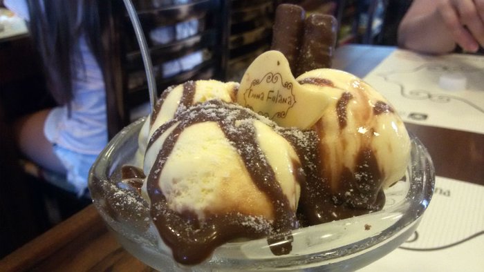 Antes de passar aos doces, pedimos um Tost Bife, sanduíche de rosbife com picles e bastante queijo, no pão de forma crocante. Se a maioria das pessoas que vai lá opta pelas guloseimas doces, posso dizer que esse sanduíche cumpre muito bem o o papel de salgado.