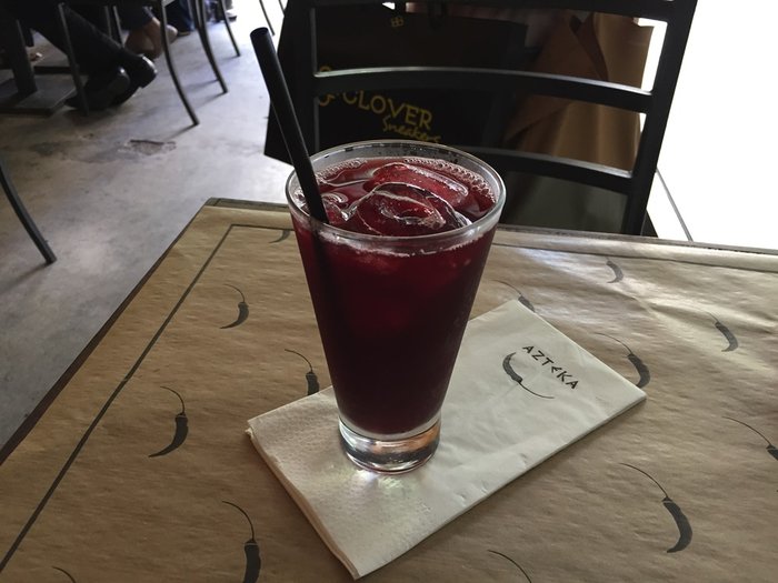 Bom, não paramos por aí. Forammais algumas margaritas de hibiscos e acabei esquecendo de fotografar o restaurante... rs. Mas isso foi até bom , porque me fez voltar, dessa vez na hora do almoço! Para beber, pedi Água de Jamaica – já que a margarita de hibiscos era tão boa, uma suco de flores de hibisco da casa também haveria de ser. E era. Um leve toque de canela, sem açúcar, super refrescante.