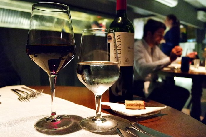 Começamos por um vinho da carta, o argentino La Linda Malbec. O frio já tinha começado a dar as caras em Porto Alegre e eu estava sedenta por um tinto.