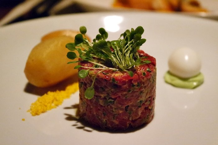 A minha escolha foi o beef tartare, com batata fondant e farofa de gema de ovo. O tempero da carne estava no ponto, um dos melhores tartares que experimentei. Alguém aí acredita se eu disser que já estava praticamente satisfeita com esses três pratos? Mas tinha mais pela frente.