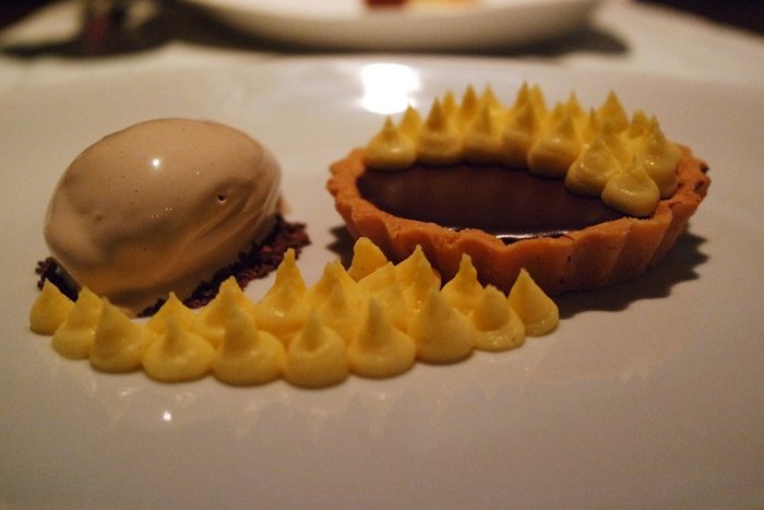 Nada, porém, supera o meu pedido: a ópera tart, uma releitura da tradicional sobremesa francesa com chocolate e baunilha, finalizada com sorvete de café e chocolate. Comeria esse doce todos os dias sem problema algum.