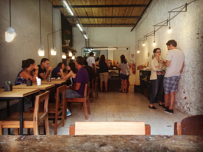 Não é à toa que já na sua primeira semana estava súper movimentada: só no boca a boca conseguiu uma clientela cativa que comprava pelo site ou na feira carioca Junta Local. Inclusive, inspirada em sua origem como barraquinha da Junta, a padaria dedicou um cantinho à memória, formado por um armário de caixotes de feira e chamado de Entreposto.