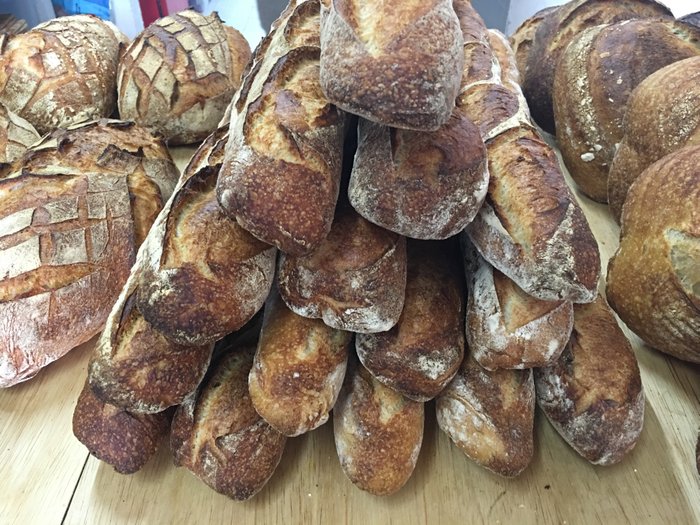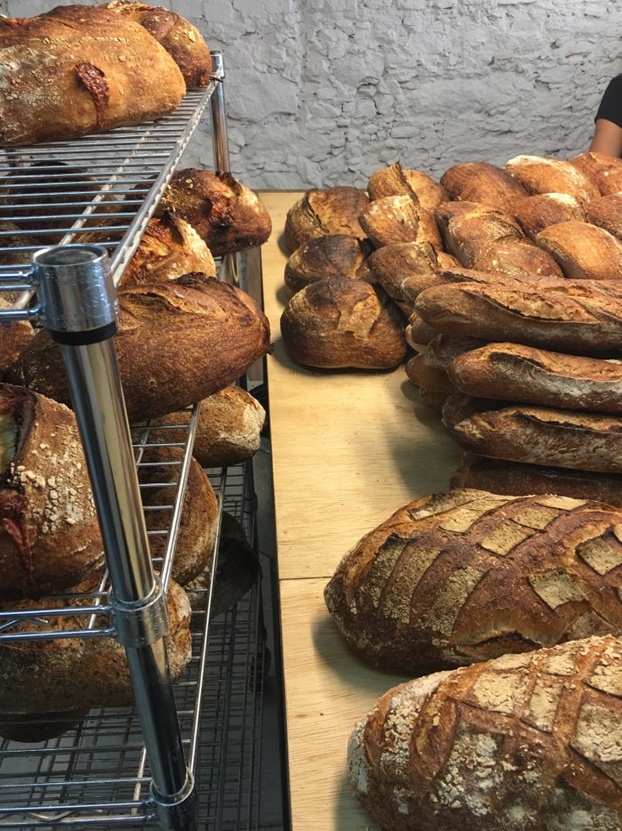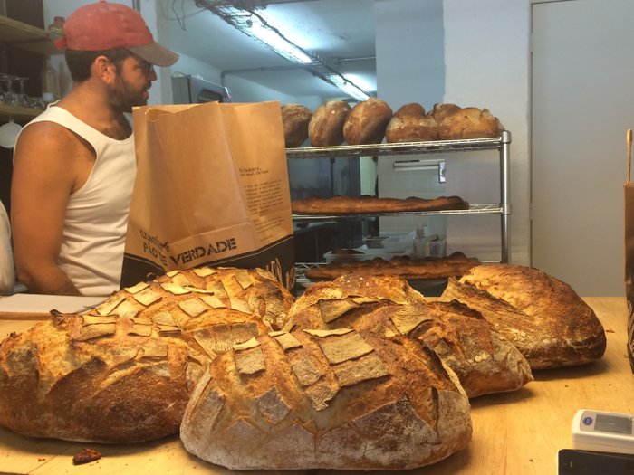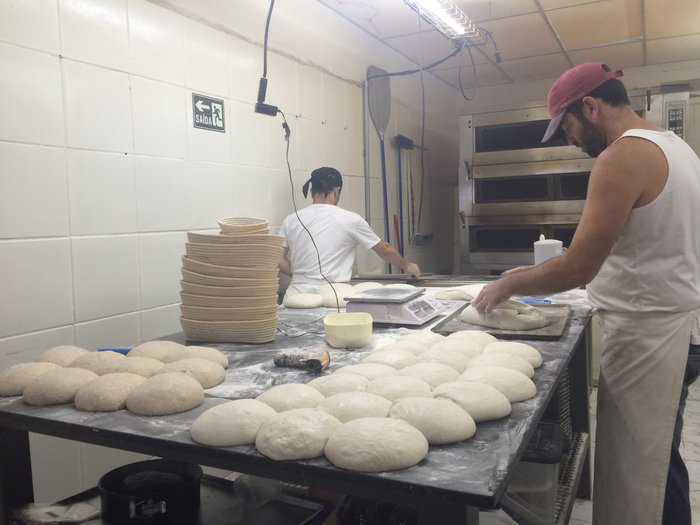 O Rafa, que aparece ali atrás, é o padeiro responsável por toda essa história. Ele e a Ludmila (brasiliense como eu) montaram essa padaria artesanal inspirados em um movimento de resgate de métodos originais que está rolando forte na Califórnia.