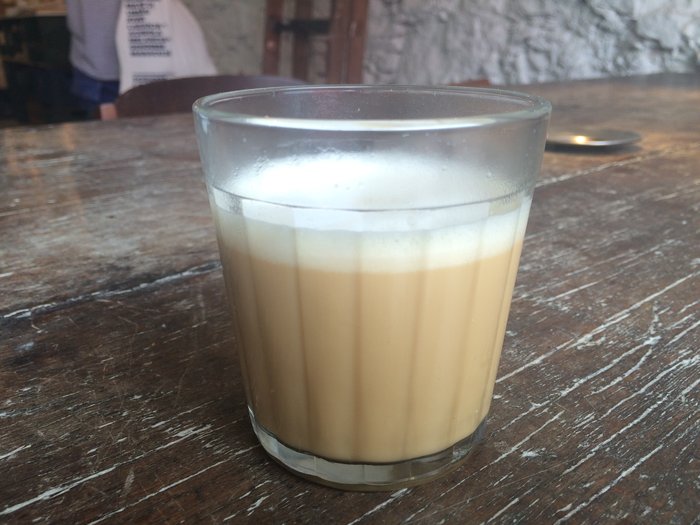 Achei uma graça eles chamarem o macchiato de Manchadinho, afinal essa é uma padaria/café/fábrica brasileira! E, se você reparar, tudo tem um detalhe. Esse copinho pequeno lembra o de boteco!