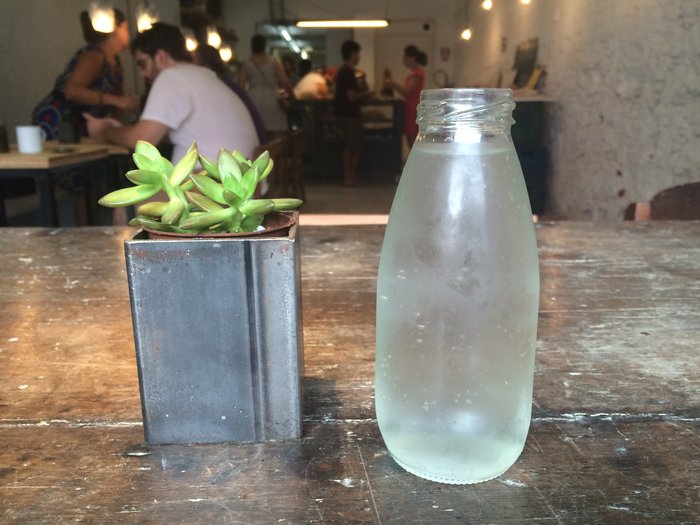 Ah, para, né! Tem até água saborizada à vontade que você serve em uma garrafinha fofa.