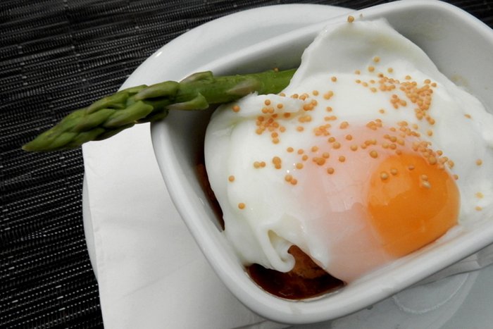 Teve também o Les Oeufs Arrivent: ovo pochê, ragu de tomate, brioche e aspargo. Gema mole na medida, brioche saborosíssimo. Bela pedida.