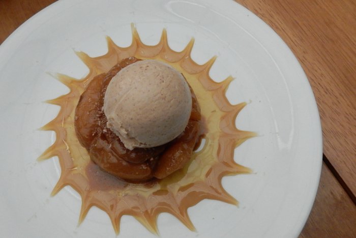 Essa começou ganhando pelos olhos. Apresentação impecável. Pommes Savoureuses. Maçãs caramelizadas e banhadas no creme de leite fresco, noz moscada, canela, açúcar mascavo com calda de doce de leite e sorvete de canela. Leiam de novo e vejam a explosão de sabores que descrevo.