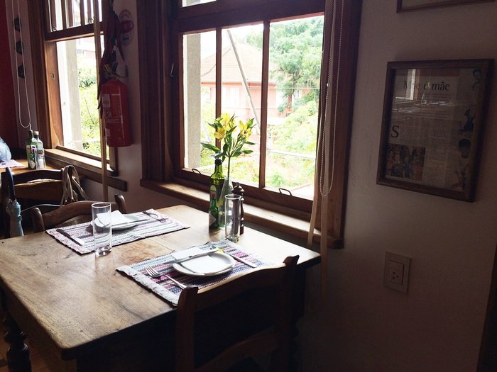 restaurante está localizado no Centro de Porto Alegre. É restaurante e é galeria de arte, tudo junto-ao-mesmo-tempo. O Spaghetti à Pavarotti é uma excelente pedida: um molho a base de tomates frescos, manjericão e cogumelos. Peça um espumante para brindar e o clima romântico está feito!