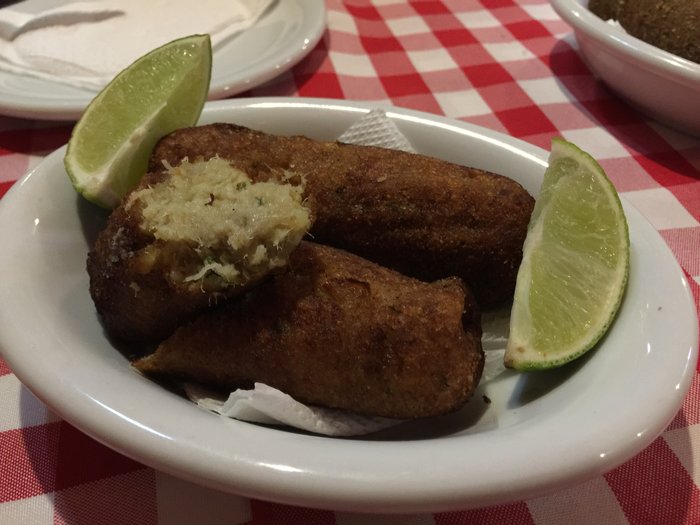 - De entrada: o clássico bolinho de bacalhau, que é bem gostoso e enorme (R$ 11,00 unidade); o croquete de carne, que é muito saboroso e faz uma combinaçao ótima com a mostarda forte que é muito forte! Cuidado! (R$ 10,00 unidade).