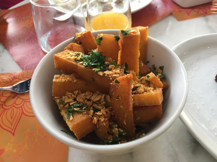 - Um dos acompanhamentos mais pedidos é a Polenta con Queso – Polenta frita com parmesão (R$ 29,00 a porção).