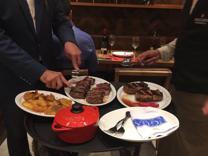 - Os cortes de carnes na maioria das vezes dá pra compartilhar (lembrando que os acompanhamentos são pagos a parte) e os garçons trazem até a mesa oferecendo o serviço completo.