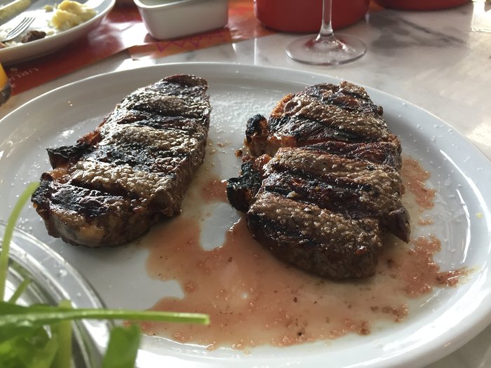 - E vamos às carnes! Steak Uruguayo Parrilla – corte de gado Angus/Hereford. Macio e suculento com pouca gordura (R$ 88,00 a porção).