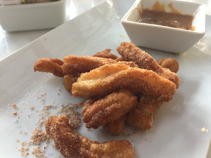 - Encerrando a pantagruélica refeição (dividida entre 9 pessoas, que fique claro), pedimos mini churros com doce de leite uruguaio, R$ 23,00 a porção.