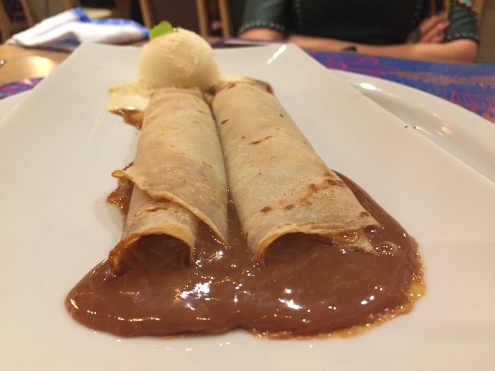 Panqueca de doce de leite e sorvete de creme: 36 reais.