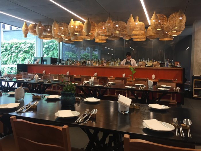 O novo restaurante do chef Rodrigo Oliveira fica no belo prédio do Instituto Moreira Salles, em plena Avenida Paulista. É uma ótima opção para um almoço seguido de visita às exposições que rolam ali. No menu, a deliciosa brasilidade de sempre em pratos como o Arroz de Linguiça Bragantina e o Angu de Fubá Caipira. Na parte dos drinks, criações originais como o Canjica Colada.