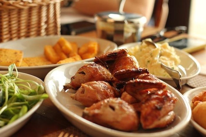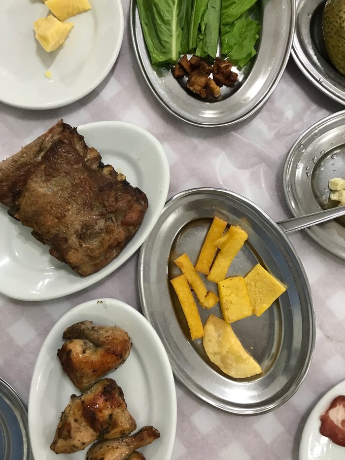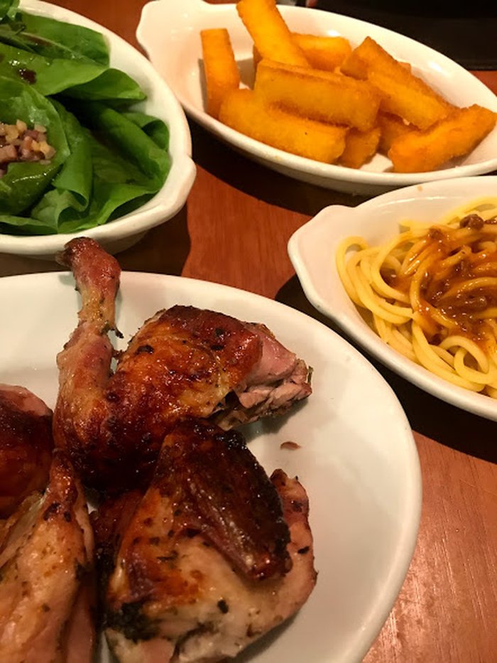 Tem um ambiente amplo, perfeito para almoços fartos em família. Além dos acompanhamentos clássicos dos galetos, eles servem costelinha de porco.