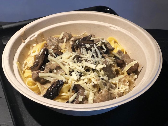 Essa é a Madero (R$17,90), com carne bovina assada na panela de ferro até desfiar no seu próprio molho e cogumelos sobre o talharim fresquinho. A carne estava muuuito bem temperada, bem salgadinha. Fez sucesso na mesa.