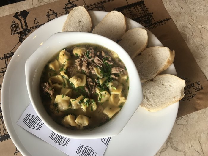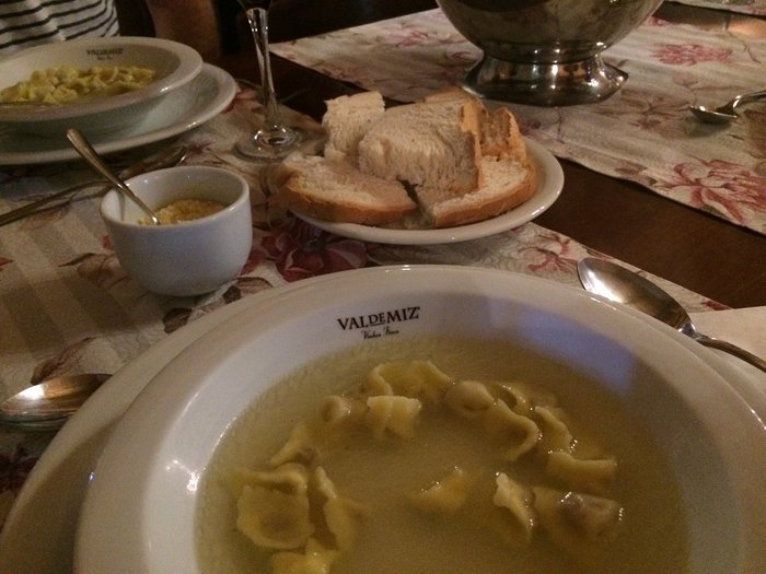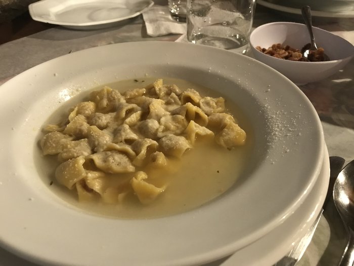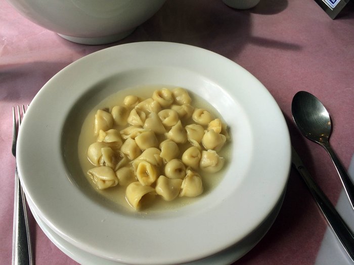A sopa servida na Osteria Della Colombina parece que foi feita minutos antes, de tão fresquinha que é a massa do agnoline. Com uma fatia de pão colonial, não há quem resista.