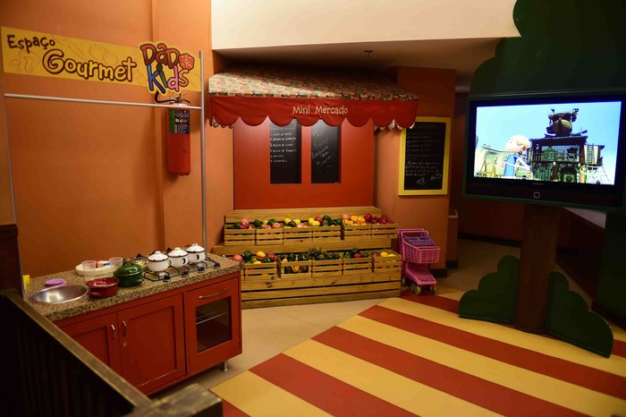 Pensa em um buffet completo: tem sushi, massas, carnes grelhadas, peixes, diversas opções de saladas e sobremesas. Tanto na unidade do shopping Bourbon Country quanto na do Praia de Belas, as crianças se divertem na área dedicada exclusivamente a elas, o Dado Kids. O destaque das brincadeiras vai para o minimercado, com carrinhos de compras, frutas e legumes, e para o espaço gourmet, onde a gurizada se diverte entre fogão e panelas de mentirinha. A parte difícil vai ser convencer as crianças a ir embora.