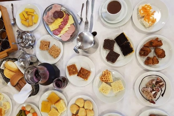 Já pensou juntar todas as comidas de um café da tarde perfeito em uma única mesa? Pois é, no Bela Vista Café Colonial é bem assim. O lugar é ótimo para curtir uma comilança depois de passear por Gramado. São mais de cem itens no cardápio, e crianças entre cinco e nove anos pagam metade do valor. Para a gurizada se divertir, há um espaço kids com a temática de neve, recreação, brincadeiras e jogos.