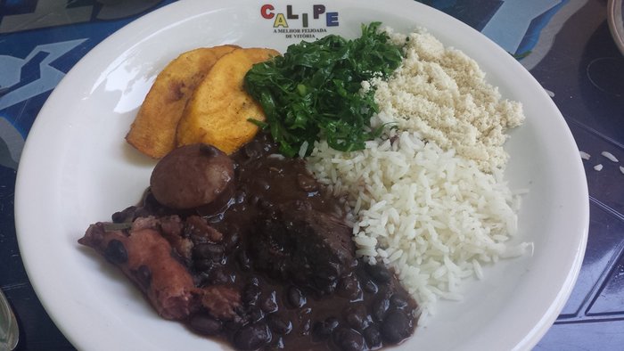 É um desses botecos com cara de boteco mesmo. Mesas e cadeiras de plástico de todas as cervejarias imagináveis e ainda umas de madeira para compor. É commum ouvir que o Calipe tem a melhor feijoada de Vitória. Tem paio, carne seca, orelha, pé, calabresa, rabo, completíssima!