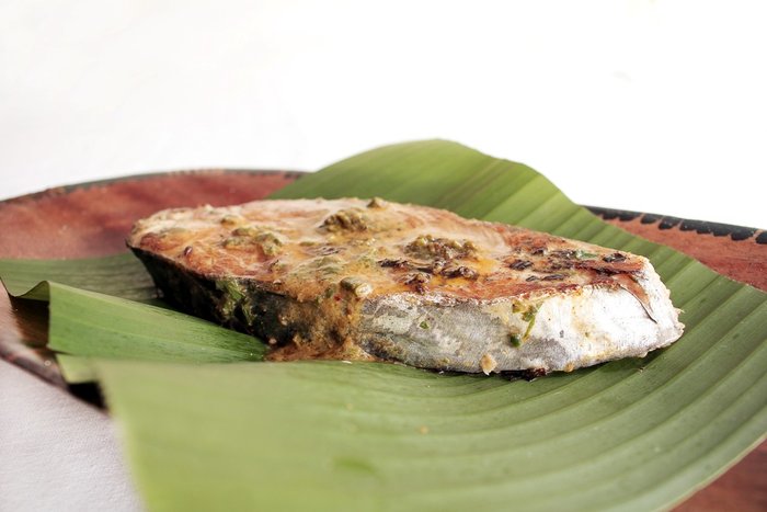 2 postas de sororoca ou de outro peixe da estação l 1 colher (chá) de tahine (pasta de grão-de-bico)