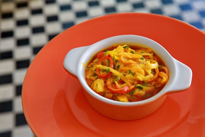 5. Para finalizar, coloque o leite de coco e a salsa picada.