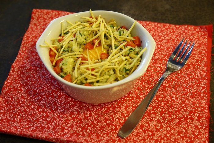9. Acrescente a batata-palha somente na hora de servir para não perder a crocância.