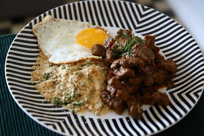 PICADINHO COM FAROFA E OVO ESTALADO