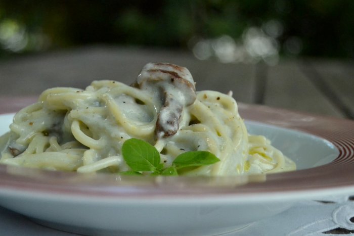 MASSA COM MOLHO GORGONZOLA E FILÉ