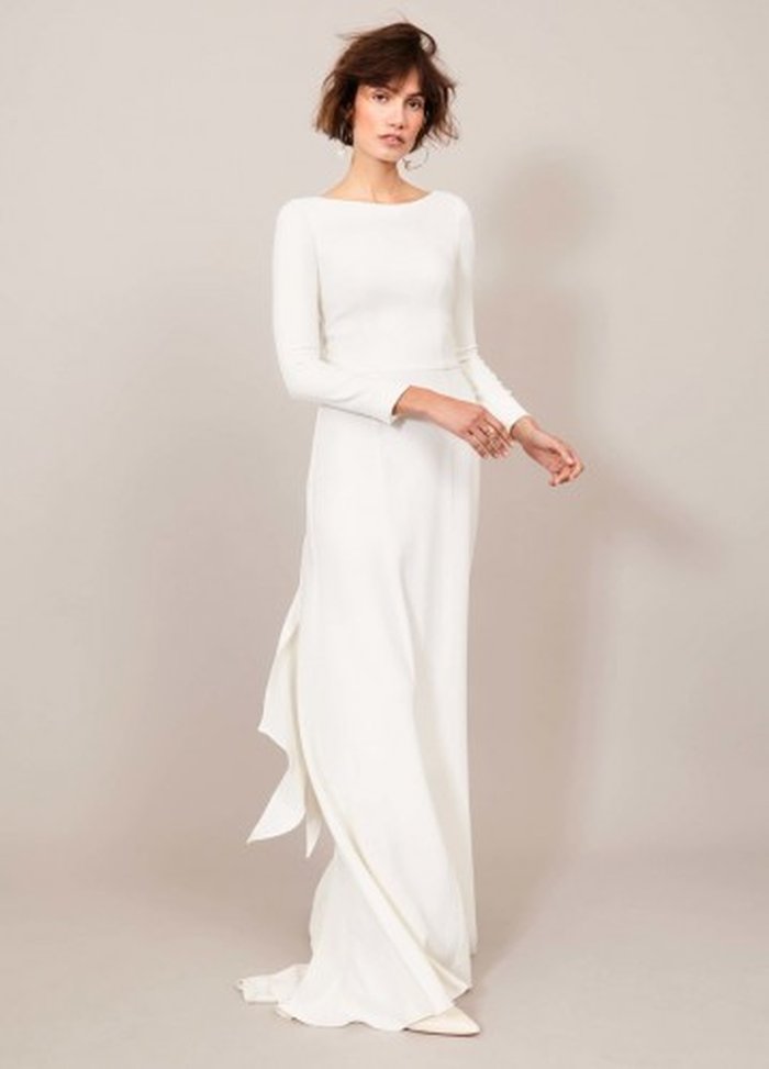 A influência de Meghan Markle pode ser sentida claramente nesse retorno às linhas limpas e neutralidade. Vale lembrar que vestidos clean são muitas vezes mais difíceis de fazer, sem a distração de bordados e detalhes rebuscados, o design fica em primeiro plano e precisa estar impecável. Espere ver também o decote canoa, eleito para o vestido principal, assim como a cava americana, elemento presente no vestido usado em sua recepção.