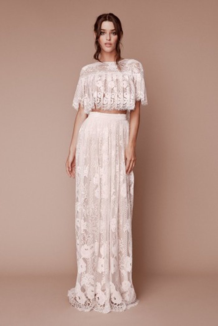 Saia e blusa são ótima ideia para aquele dilema de querer casar de noiva, mas achar que nunca mais vai usar o vestido. Elegendo duas peças, a chance de aproveitar o look separadamente no futuro é bem maior.