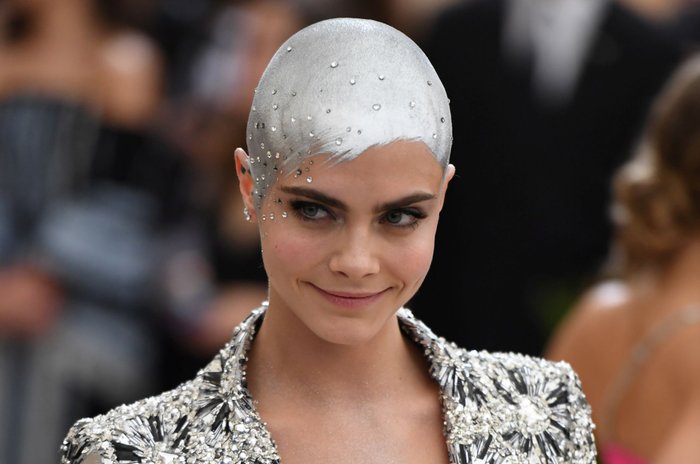 Aos 24 anos, Cara Delevingne é atualmente um dos nomes mais queridos e requisitados da moda. Além das passarelas, a londrina conquistou as telas de cinema. E justamente por conta de uma personagem em um novo filme, desfilou careca no tapete vermelho do Met Gala 2017, o baile mais elegante de Nova York.