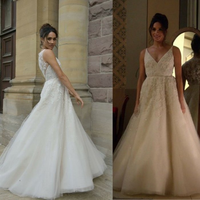 Durante a série Suits, sua personagem, Rachel Zane, se casou e a escolha foi muito semelhante com as especulações de um vestido romântico. O casamento deve ser na primavera europeia, então a primeira dica é que como a temperatura será amena, é possível que a atriz use um modelo leve como o escolhido por Rachel na série de televisão. O decote romântico é uma aposta!