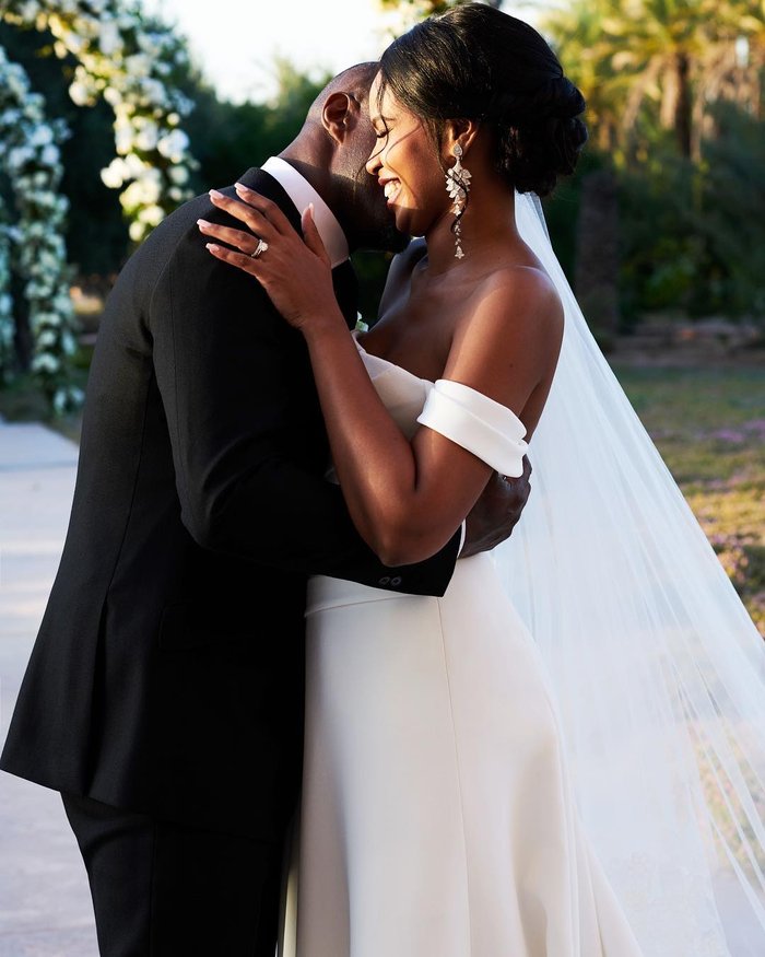 Sabrina usou dois vestidos da americana Vera Wang, uma das estilistas preferidas das noivas famosas, enquanto Idris vestiu um terno de Ozwald Boateng, estilista britânico de ascendência ganesa. A badalação aconteceu no hotel Ksar Char Bagh.
