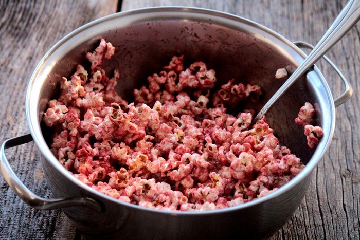 A parte mais bacana dessa pipoca é que ela é doce, mas também carrega aquela acidez deliciosa do vinho. Ficam simplesmente viciantes e ainda por cima com essa cor linda.