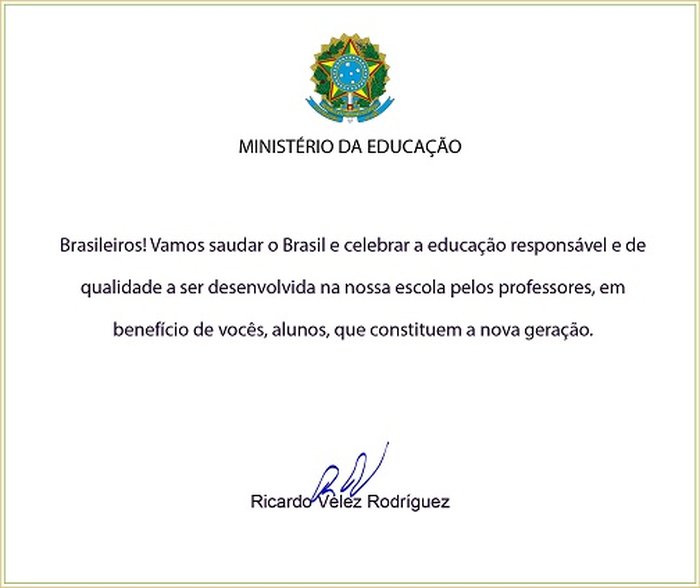 Na nova versão do comunicado aos diretores das instituições de ensino, consta a seguinte mensagem: "Brasileiros! Vamos saudar o Brasil e celebrar a educação responsável e de qualidade a ser desenvolvida na nossa escola pelos professores, em benefício de vocês, alunos, que constituem a nova geração."