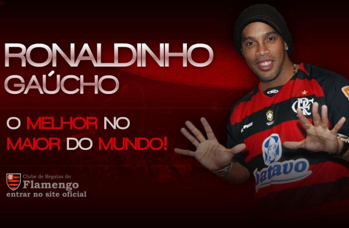 Após as desistências de Grêmio e Palmeiras, o Flamengo anunciou na noite desta segunda-feira, em entrevista coletiva em um hotel do Rio de Janeiro, a contratação de Ronaldinho. A apresentação será na quarta-feira, em local ainda indefinido.