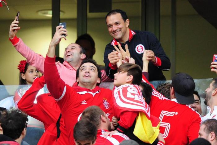 Quem deu show foi a torcida: 27 mil pessoas e muita festa para D'Alessandro e Iarley, que tirou muitas fotos com os colorados.