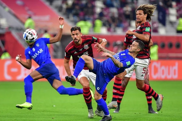 O começo de jogo foi agitado. Com apenas cinco minutos, Al Dawsari abriu o placar de pênalti, mas Pedro buscou o empate aos 19. No fim da primeira etapa, o time asiático, que era treinado por Ramón Díaz, teve nova penalidade marcada, com Gerson sendo expulso. Mais uma vez, Al Dawsari converteu e deixou o Al Hilal à frente no placar.