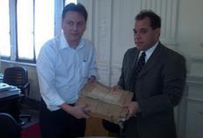 Nesta manhã, o chefe da Casa Civil do Estado, Carlos Pestana, recebeu os documentos originais do período da ditadura das mãos do delegado Fernando Martins Oliveira e do chefe de Polícia, Ranolfo Vieira Junior.