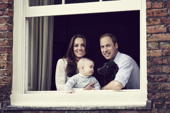 A recente divulgação da nova foto do príncipe George, por ocasião do Dia das Mães no Reino Unido, já abre margem para as comparações físicas do bebê real com seus pais, Kate Middleton e o príncipe William. Aos oito meses, George aparece na foto nos braços da mãe e encarando atento o cachorro da família, Lupo.