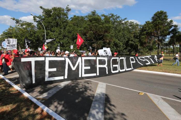 O protesto é realizado no mesmo dia em que Temer receberá o ex-presidente do Banco Central Henrique Meirelles, cotado para assumir o Ministério da Fazenda em um eventual governo do peemedebista. A previsão é de que a reunião ocorra às 16h30 e conte também com a presença do presidente do PMDB, senador Romero Jucá, e do presidente do PSD, Gilberto Kassab, partido ao qual Meirelles é filiado.